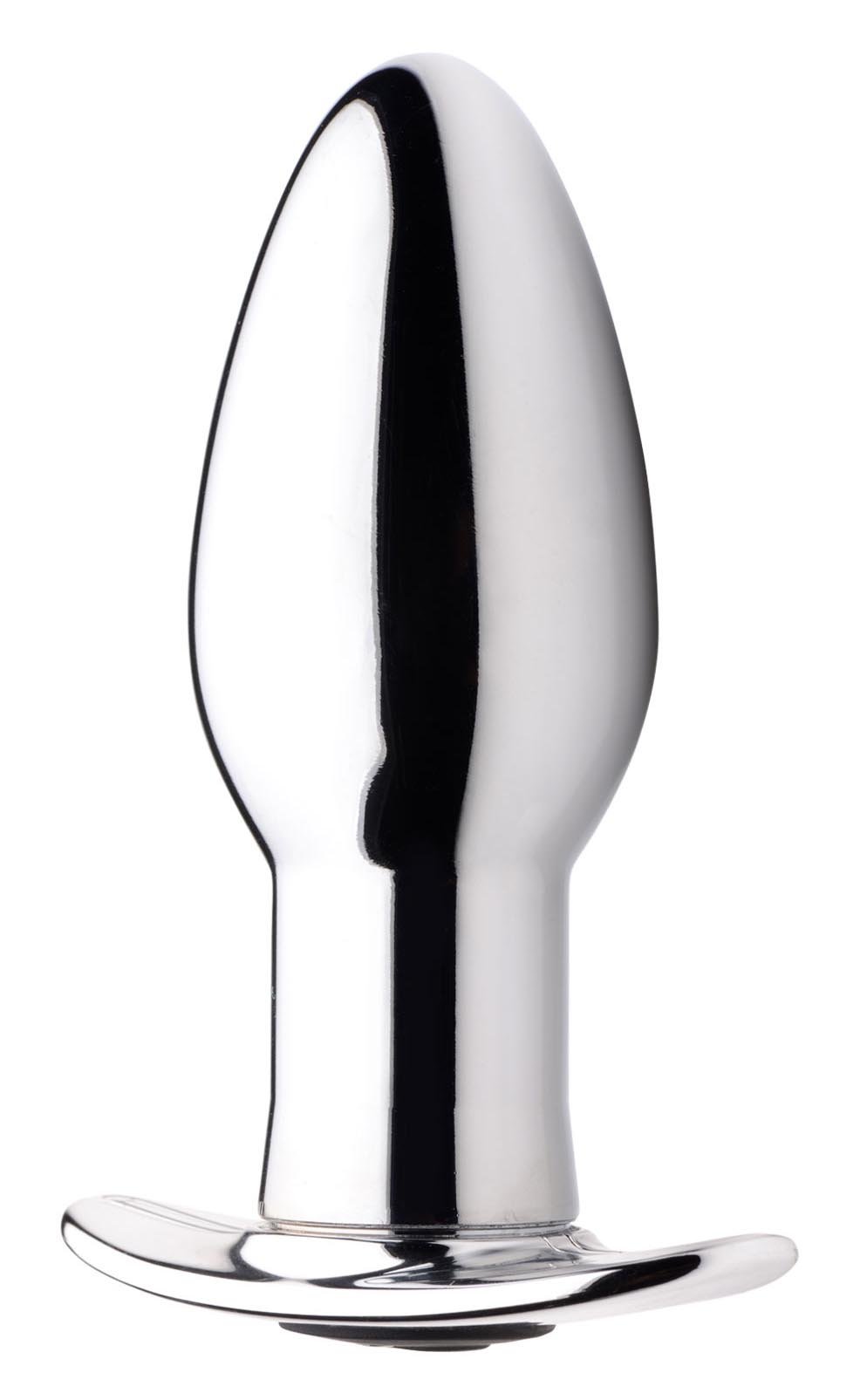 This smooth, metal butt plug is easy to use and delicious to experience! Enjoy easy insertion with the tapered end. Take pleasure in the non-porous, nickel-free metal as it slides inside. The heavy, weighted metal is compatible with all lubricant types and IP7X waterproofed. Enjoy the cool metal or warm it up in warm water before inserting.