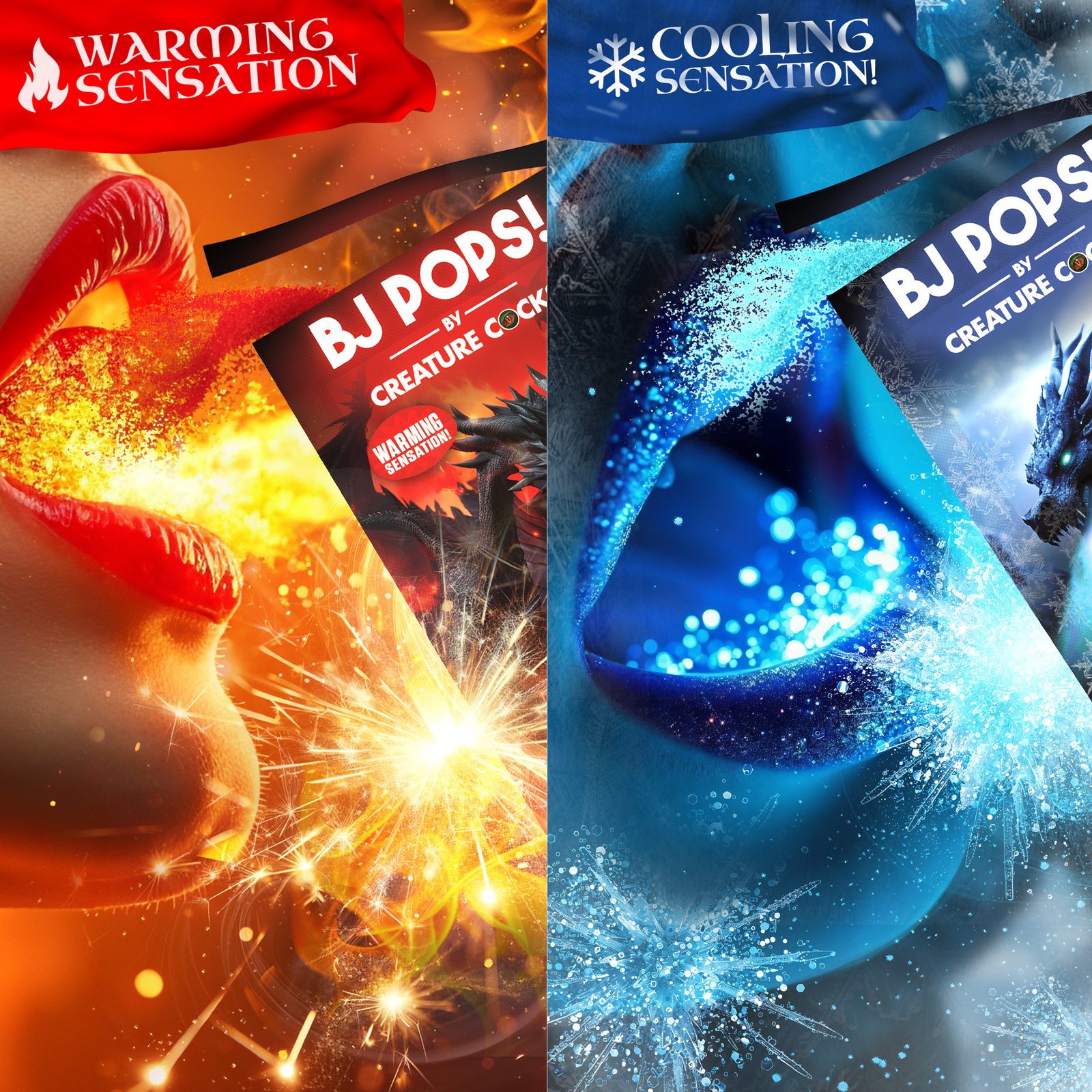Display your BJ Pops! Candy with two fire and ice dragons on the front! The eye-catching display holds 4 pieces for clients and customers to grab easily, purchase, and enjoy! Encourage them to indulge in a playful, nostalgic candy with an adult twist. Once this candy is exposed to water or saliva, these sizzling, fizzing, popping candies stimulate the mouth and any other body-part they come into contact with! Enhance oral sensations and enjoy the warming cinnamon or cooling spearmint flavors!
