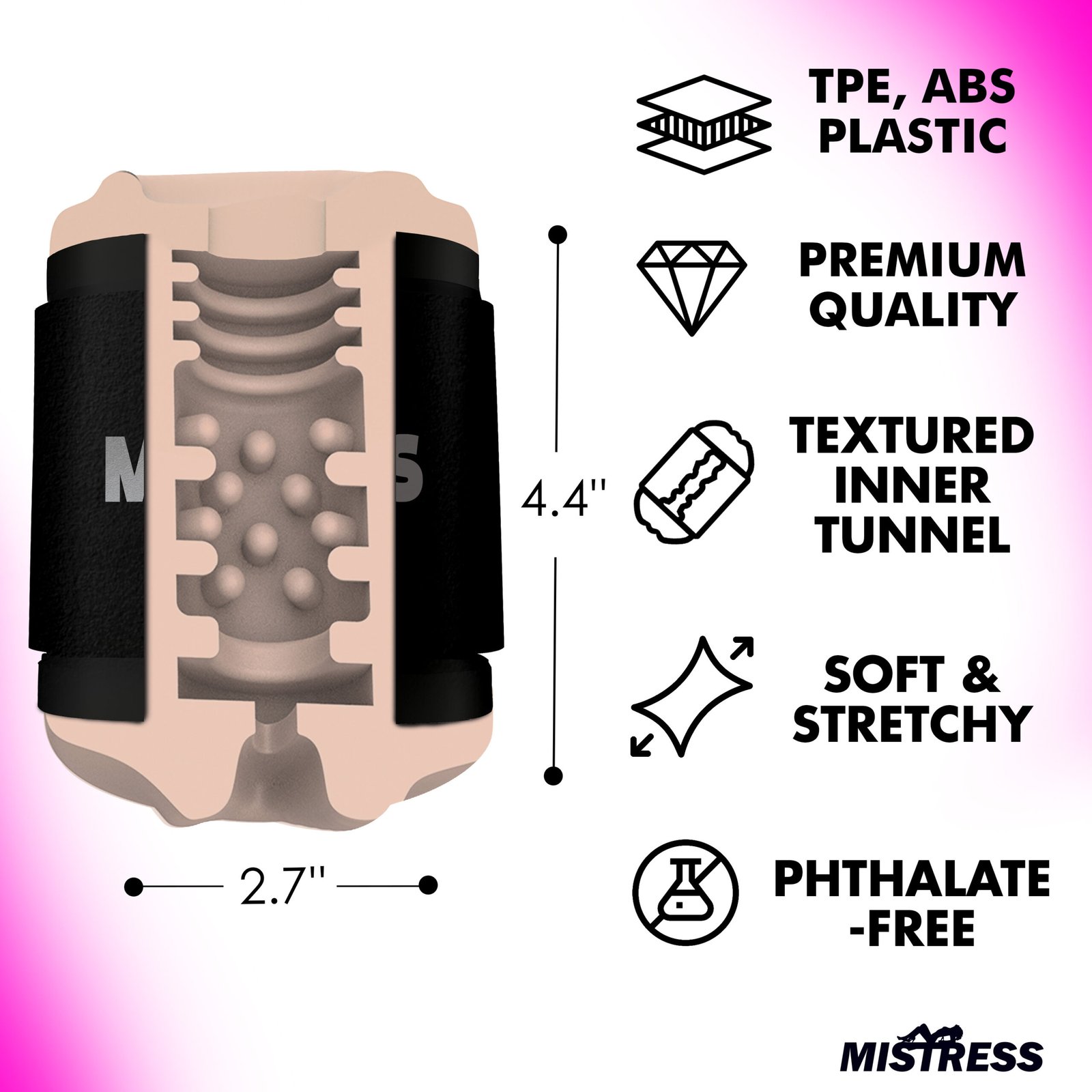 • Textured Inner Tunnel: The inner tunnel of this delicious, TPE rubber has ridges, bumps and curves in the tight little hole of either the two stroker entrances.
