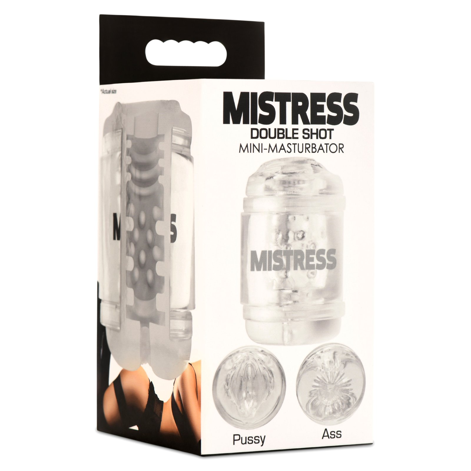 Want something a little different? This Mistress Double Shot Pussy and Ass Stroker gives you both the feeling you’re craving and enhances your experience with a clear sleeve and case! Like dipping your wick into crystal, you can see the TPE sleeve stretch and wrap around your rod with each stroke. The light catches in the squishy, soft material so your shaft can still be seen and enjoyed. Choose between the pussy or ass entrances and use the case to grip it as you use some slippery, water-based lubricant to make sure this Mistress stroke is wet enough for you. The textured sleeve will massage and stimulate you with each stroke. Keep the cap on the end for the head of your shaft to bump up on or leave it off and try to push yourself through! The open-ended design also makes clean up easy; simply rinse and let the water and mild soap run through the sleeve. After you let it thoroughly dry, place the caps on the ends to keep it dust and debris free.