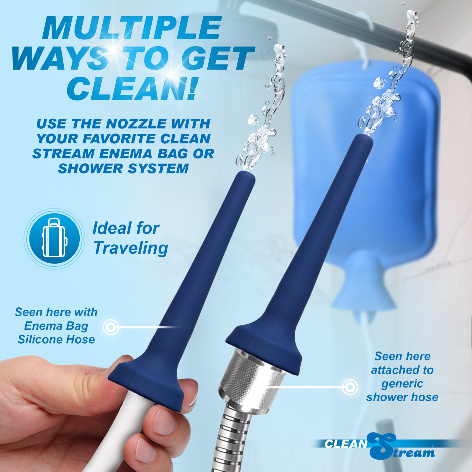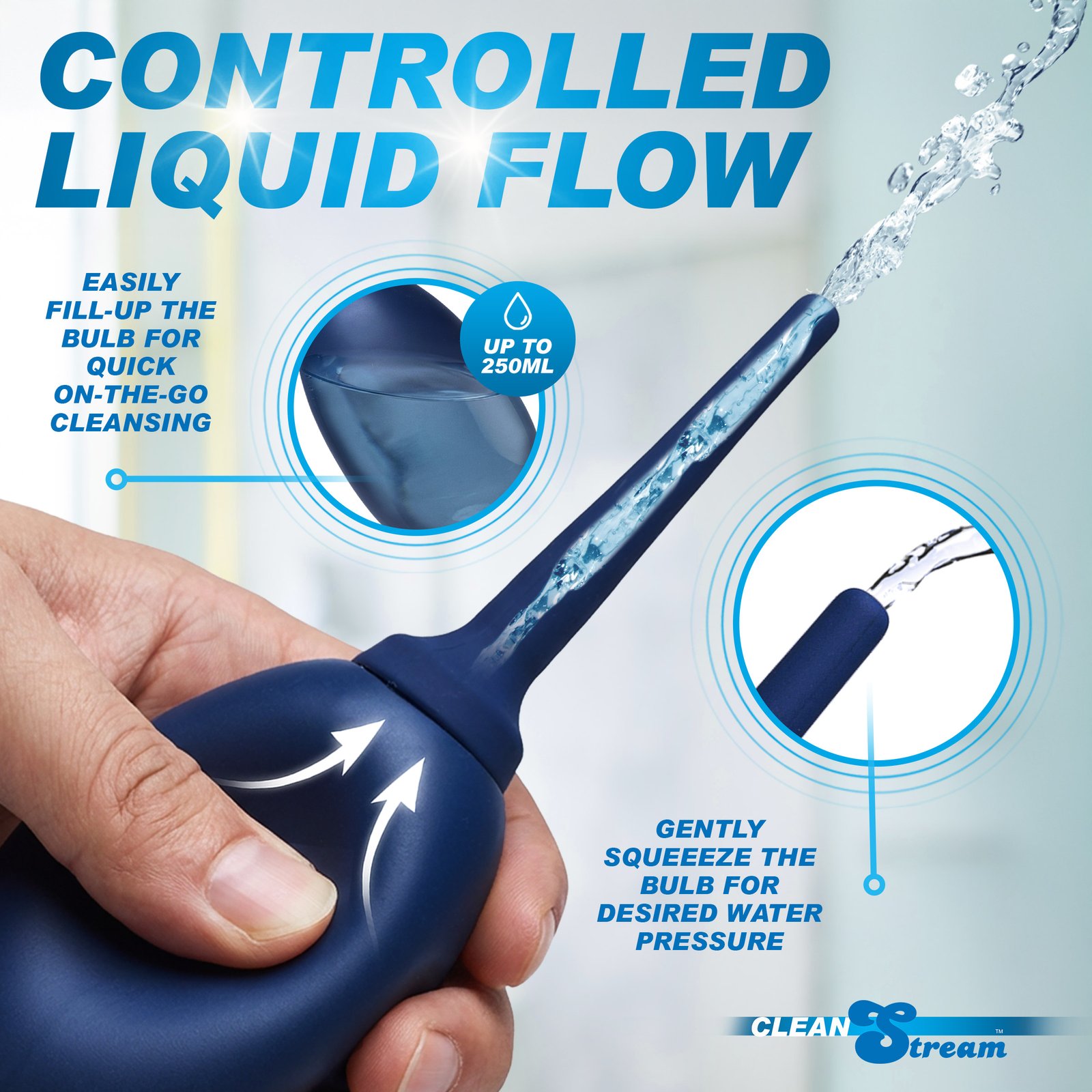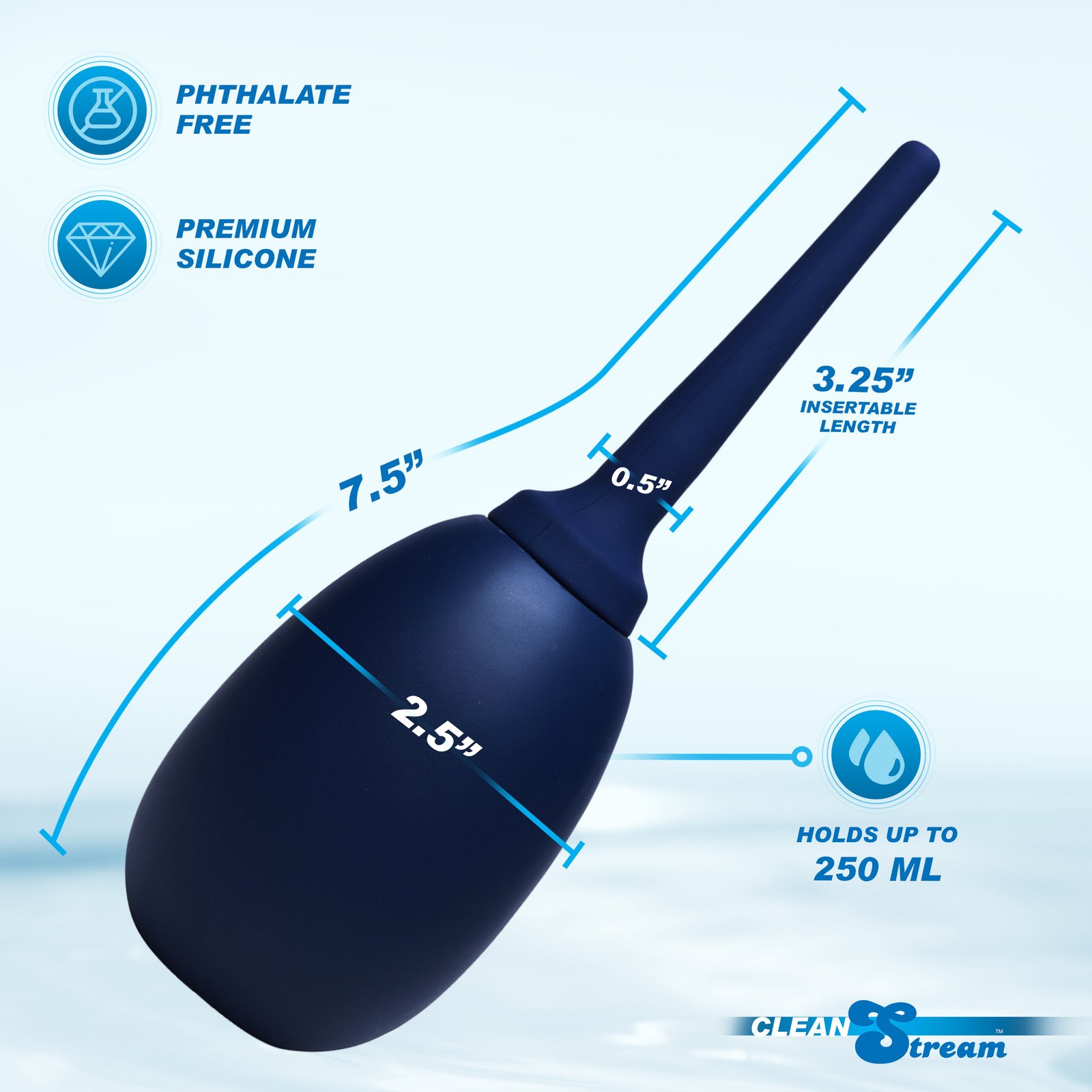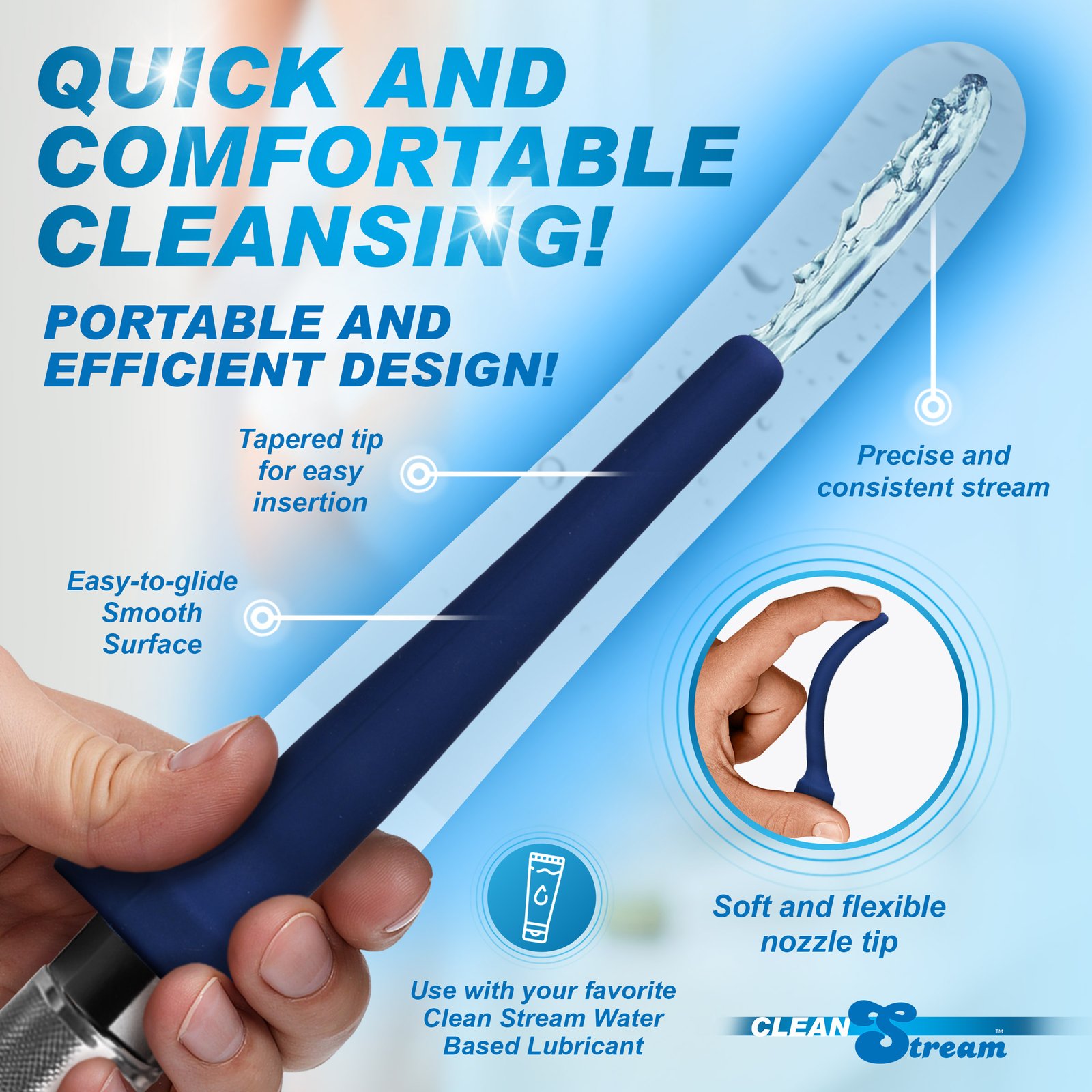 The CleanStream Flex-Tip Cleansing Bulb is a versatile and accommodating addition to your cleansing regimen. Made of body safe, premium silicone so it is durable and clean up is a cinch. This premium bulb includes a flexible tapered tip so it bends with your body. The threaded screw at the base of the tip is made of body safe ABS plastic. The removable tip can also be used with any of the CleanStream Shower System and cleansing bags.
