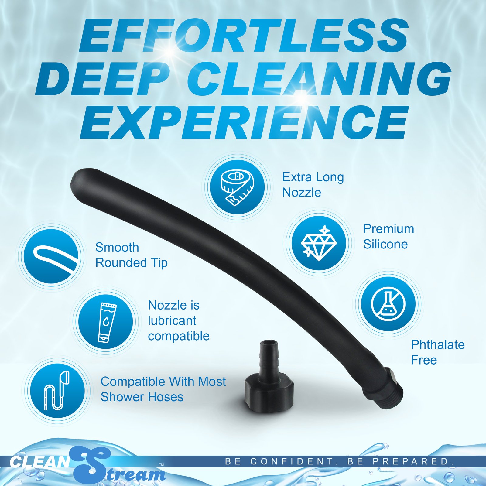 With the CleanStream Silicone Comfort Nozzle, you can add length and flexible comfort to your cleansing routine. This pure silicone nozzle attaches directly to your CleanStream metal shower system or any of our CleanStram bag systems. With added length, flexibility, and soft, supple silicone material, your cleansing sessions will be much more enjoyable.