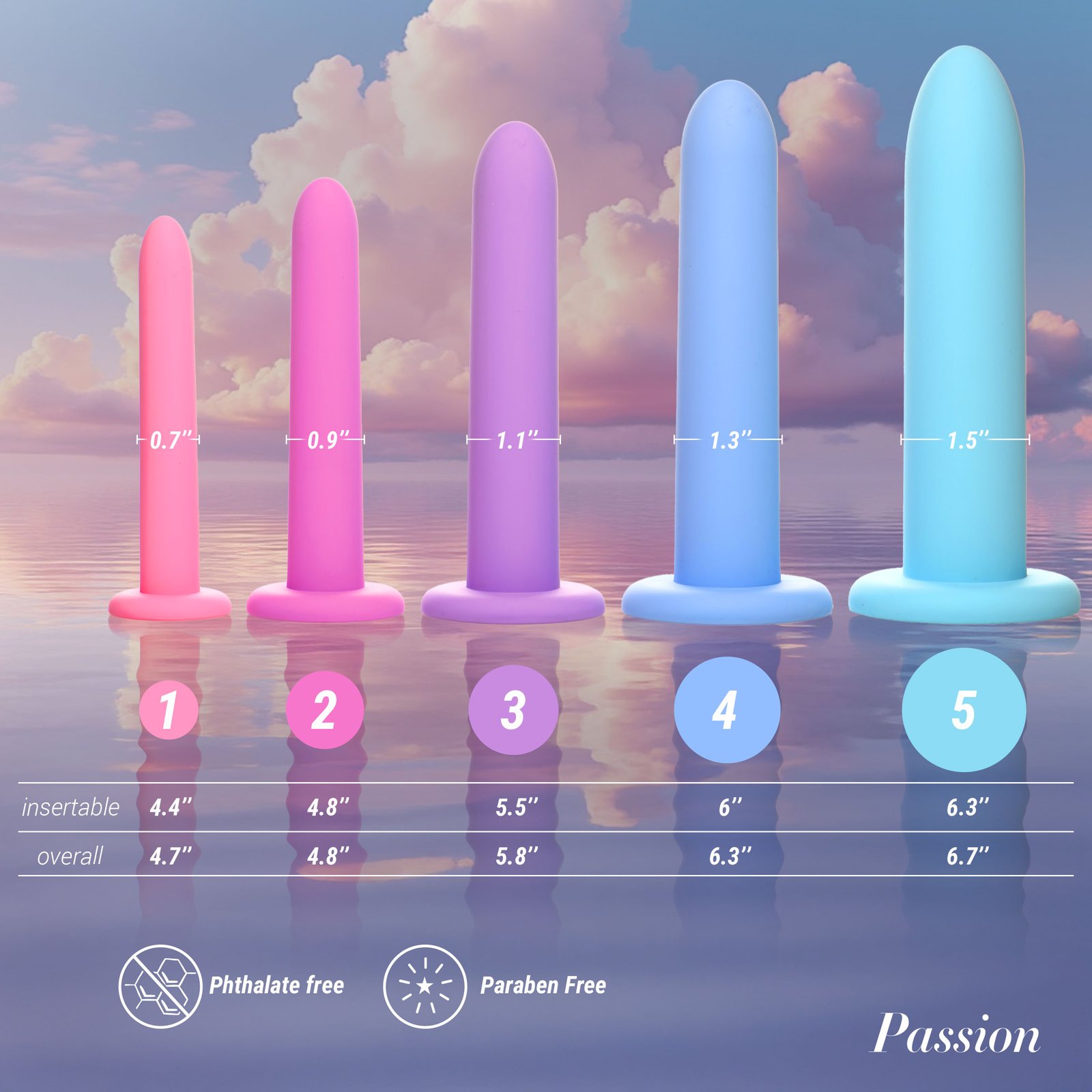 • Step 5: 6.7 inches overall length, 6.3 inches insertable length, 1.5 inches widest insertable diameter