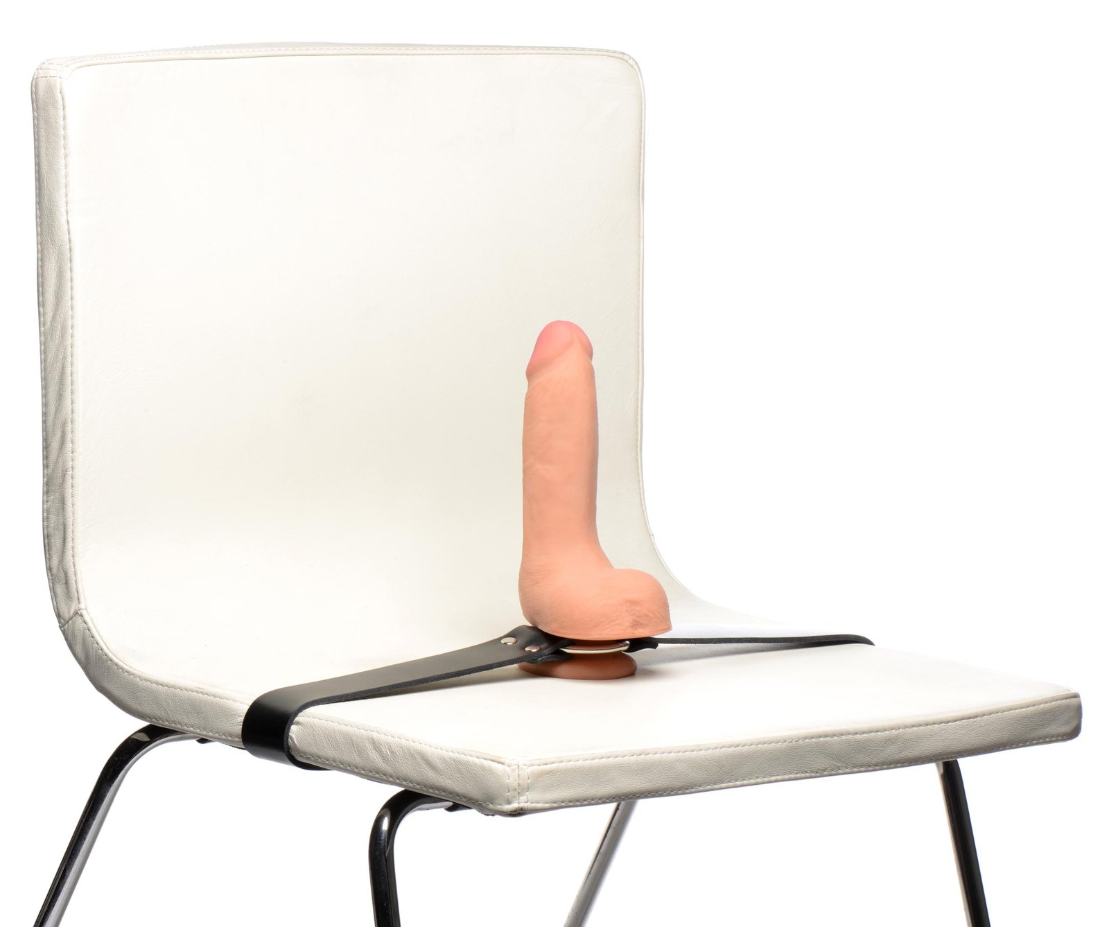 Play with your creativity and get the position you desire! With this strap harness, nearly anything is possible! Slip in a compatible dildo through the metal O-ring and adjust the straps as needed. This versatile strap can be placed on objects such as chairs or people with wide hips!
