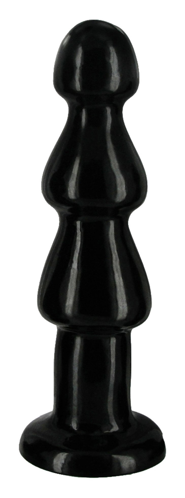 The Three Bumps for your Rump Butt Plug, is a huge black butt plug with three ridges that resemble cock heads. The butt plug has a suction cup bottom so that it can be placed on any surface for hands free pleasure. This is an excellent toy for ambitious power bottoms, and fisting enthusiasts. Each plug is designed with three heads that taper wider as you insert the plug deeper, for a unique and stimulating sensation.